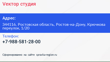 Vектор, студия по адресу 344116, Ростовская область, Ростов-на-Дону, Крючкова переулок, 1/20 в дальнейшем Организация, размещена в следующих категориях: