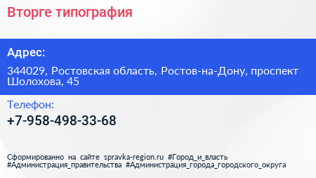 Вторге, типография по адресу 344029, Ростовская область, Ростов-на-Дону, проспект Шолохова, 45 в дальнейшем Организация, размещена в следующих категориях: