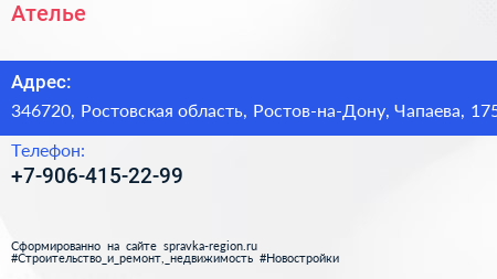 Ателье по адресу 346720, Ростовская область, Ростов-на-Дону, Чапаева, 175 в дальнейшем Организация, размещена в следующих категориях: