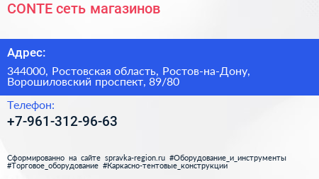 CONTE, сеть магазинов по адресу 344000, Ростовская область, Ростов-на-Дону, Ворошиловский проспект, 89/80 в дальнейшем Организация, размещена в следующих категориях: