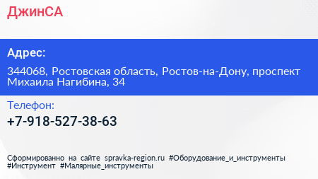 ДжинСА по адресу 344068, Ростовская область, Ростов-на-Дону, проспект Михаила Нагибина, 34 в дальнейшем Организация, размещена в следующих категориях:
