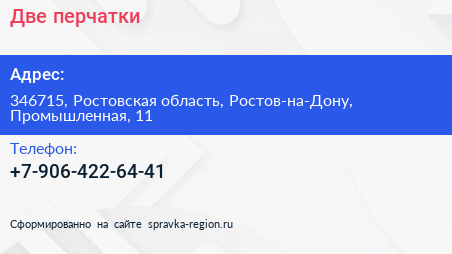 Две перчатки по адресу 346715, Ростовская область, Ростов-на-Дону, Промышленная, 11 в дальнейшем Организация, размещена в следующих категориях: