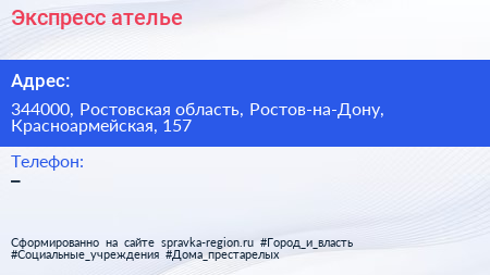 Экспресс-ателье по адресу 344000, Ростовская область, Ростов-на-Дону, Красноармейская, 157 в дальнейшем Организация, размещена в следующих категориях: