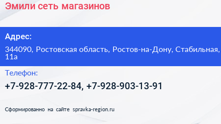 Эмили, сеть магазинов по адресу 344090, Ростовская область, Ростов-на-Дону, Стабильная, 11а в дальнейшем Организация, размещена в следующих категориях: