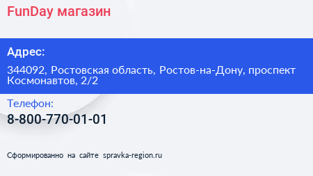 FunDay, магазин по адресу 344092, Ростовская область, Ростов-на-Дону, проспект Космонавтов, 2/2 в дальнейшем Организация, размещена в следующих категориях: