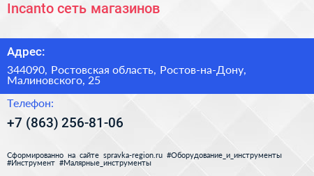 Incanto, сеть магазинов по адресу 344090, Ростовская область, Ростов-на-Дону, Малиновского, 25 в дальнейшем Организация, размещена в следующих категориях: