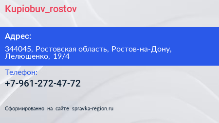 Kupiobuv_rostov по адресу 344045, Ростовская область, Ростов-на-Дону, Лелюшенко, 19/4 в дальнейшем Организация, размещена в следующих категориях: