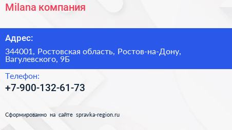 Milana, компания по адресу 344001, Ростовская область, Ростов-на-Дону, Вагулевского, 9Б в дальнейшем Организация, размещена в следующих категориях: