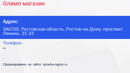 Олимп, магазин по адресу 346720, Ростовская область, Ростов-на-Дону, проспект Ленина, 21-23 в дальнейшем Организация, размещена в следующих категориях: