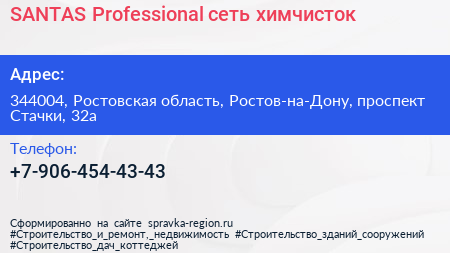 SANTAS Professional, сеть химчисток по адресу 344004, Ростовская область, Ростов-на-Дону, проспект Стачки, 32а в дальнейшем Организация, размещена в следующих категориях: