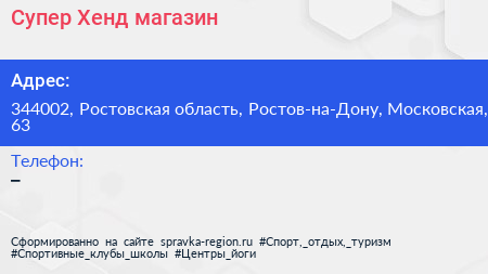 Супер Хенд, магазин по адресу 344002, Ростовская область, Ростов-на-Дону, Московская, 63 в дальнейшем Организация, размещена в следующих категориях: