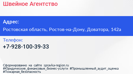 Швейное Агентство по адресу Ростовская область, Ростов-на-Дону, Доватора, 142а в дальнейшем Организация, размещена в следующих категориях: