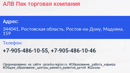 АЛВ Пак, торговая компания по адресу 344041, Ростовская область, Ростов-на-Дону, Мадояна, 159 в дальнейшем Организация, размещена в следующих категориях: