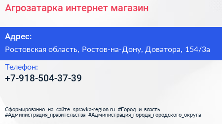 Агрозатарка, интернет-магазин по адресу Ростовская область, Ростов-на-Дону, Доватора, 154/3а в дальнейшем Организация, размещена в следующих категориях: