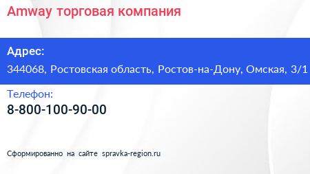 Amway, торговая компания по адресу 344068, Ростовская область, Ростов-на-Дону, Омская, 3/1 в дальнейшем Организация, размещена в следующих категориях: