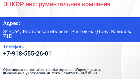 ЭНКОР, инструментальная компания по адресу 344064, Ростовская область, Ростов-на-Дону, Вавилова, 71Б в дальнейшем Организация, размещена в следующих категориях: