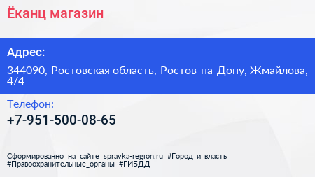 Ёканц, магазин по адресу 344090, Ростовская область, Ростов-на-Дону, Жмайлова, 4/4 в дальнейшем Организация, размещена в следующих категориях: