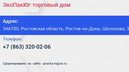 ЭкоПакЮг, торговый дом по адресу 346720, Ростовская область, Ростов-на-Дону, Шолохова, 3 в дальнейшем Организация, размещена в следующих категориях: