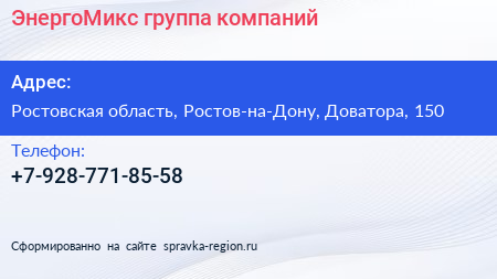 ЭнергоМикс, группа компаний по адресу Ростовская область, Ростов-на-Дону, Доватора, 150 в дальнейшем Организация, размещена в следующих категориях: