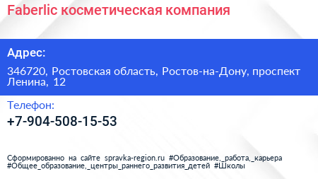 Faberlic, косметическая компания по адресу 346720, Ростовская область, Ростов-на-Дону, проспект Ленина, 12 в дальнейшем Организация, размещена в следующих категориях: