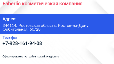 Faberlic, косметическая компания по адресу 344114, Ростовская область, Ростов-на-Дону, Орбитальная, 60/28 в дальнейшем Организация, размещена в следующих категориях: