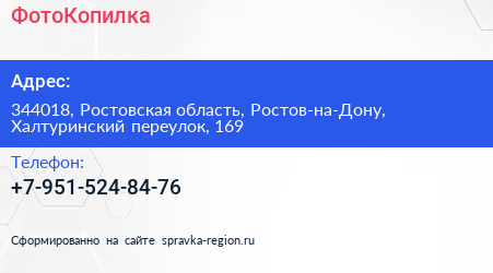 ФотоКопилка по адресу 344018, Ростовская область, Ростов-на-Дону, Халтуринский переулок, 169 в дальнейшем Организация, размещена в следующих категориях: