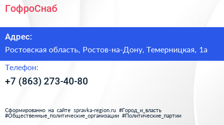 ГофроСнаб по адресу Ростовская область, Ростов-на-Дону, Темерницкая, 1а в дальнейшем Организация, размещена в следующих категориях: