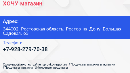 ХОЧУ!, магазин по адресу 344002, Ростовская область, Ростов-на-Дону, Большая Садовая, 63 в дальнейшем Организация, размещена в следующих категориях: