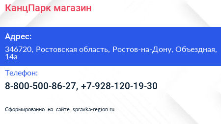 КанцПарк, магазин по адресу 346720, Ростовская область, Ростов-на-Дону, Объездная, 14а в дальнейшем Организация, размещена в следующих категориях: