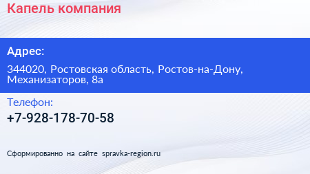 Капель, компания по адресу 344020, Ростовская область, Ростов-на-Дону, Механизаторов, 8а в дальнейшем Организация, размещена в следующих категориях: