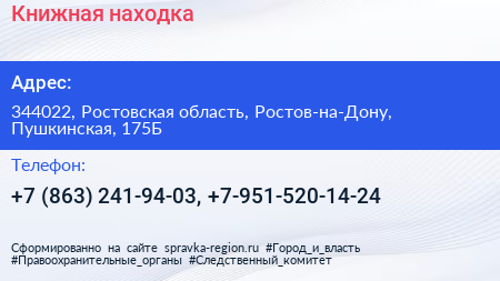 Книжная находка по адресу 344022, Ростовская область, Ростов-на-Дону, Пушкинская, 175Б в дальнейшем Организация, размещена в следующих категориях: