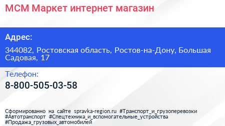 МСМ Маркет, интернет-магазин по адресу 344082, Ростовская область, Ростов-на-Дону, Большая Садовая, 17 в дальнейшем Организация, размещена в следующих категориях: