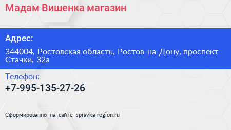 Мадам Вишенка, магазин по адресу 344004, Ростовская область, Ростов-на-Дону, проспект Стачки, 32а в дальнейшем Организация, размещена в следующих категориях:
