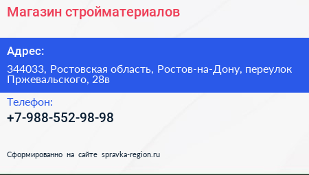 Магазин стройматериалов по адресу 344033, Ростовская область, Ростов-на-Дону, переулок Пржевальского, 28в в дальнейшем Организация, размещена в следующих категориях: