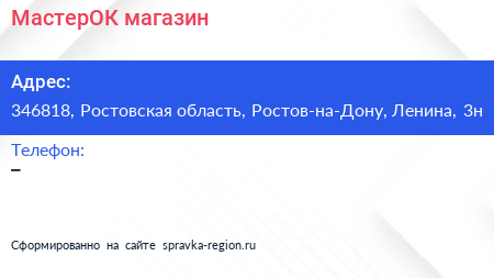 МастерОК, магазин по адресу 346818, Ростовская область, Ростов-на-Дону, Ленина, 3н в дальнейшем Организация, размещена в следующих категориях: