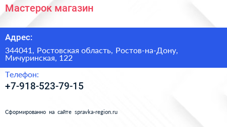 Мастерок, магазин по адресу 344041, Ростовская область, Ростов-на-Дону, Мичуринская, 122 в дальнейшем Организация, размещена в следующих категориях: