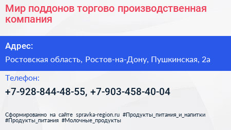 Мир поддонов, торгово-производственная компания по адресу Ростовская область, Ростов-на-Дону, Пушкинская, 2а в дальнейшем Организация, размещена в следующих категориях: