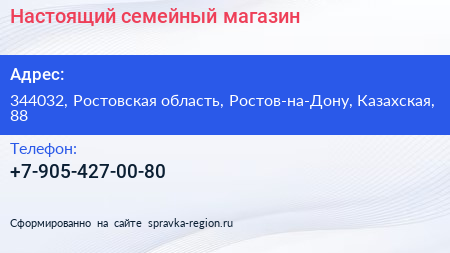 Настоящий семейный магазин по адресу 344032, Ростовская область, Ростов-на-Дону, Казахская, 88 в дальнейшем Организация, размещена в следующих категориях: