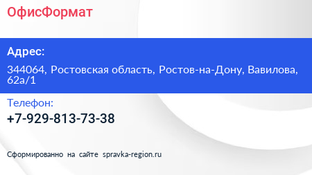 ОфисФормат по адресу 344064, Ростовская область, Ростов-на-Дону, Вавилова, 62а/1 в дальнейшем Организация, размещена в следующих категориях: