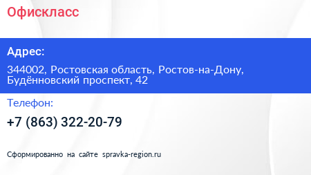Офискласс по адресу 344002, Ростовская область, Ростов-на-Дону, Будённовский проспект, 42 в дальнейшем Организация, размещена в следующих категориях: