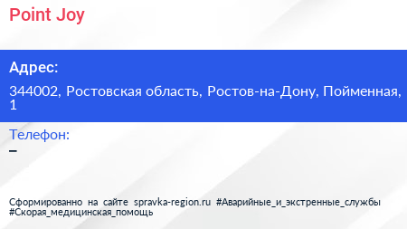 Point Joy по адресу 344002, Ростовская область, Ростов-на-Дону, Пойменная, 1 в дальнейшем Организация, размещена в следующих категориях: