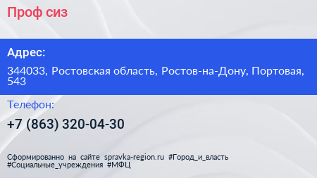 Проф-сиз по адресу 344033, Ростовская область, Ростов-на-Дону, Портовая, 543 в дальнейшем Организация, размещена в следующих категориях:
