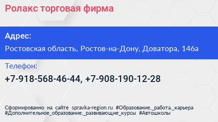Ролакс, торговая фирма по адресу Ростовская область, Ростов-на-Дону, Доватора, 146а в дальнейшем Организация, размещена в следующих категориях: