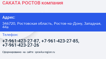 САКАТА-РОСТОВ, компания по адресу 346720, Ростовская область, Ростов-на-Дону, Западная, 44а в дальнейшем Организация, размещена в следующих категориях: