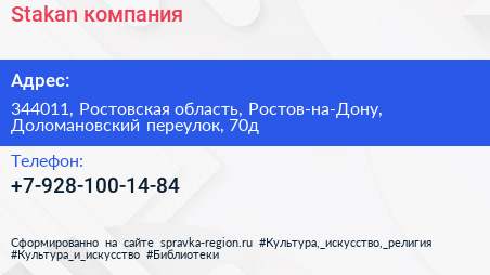 Stakan, компания по адресу 344011, Ростовская область, Ростов-на-Дону, Доломановский переулок, 70д в дальнейшем Организация, размещена в следующих категориях: