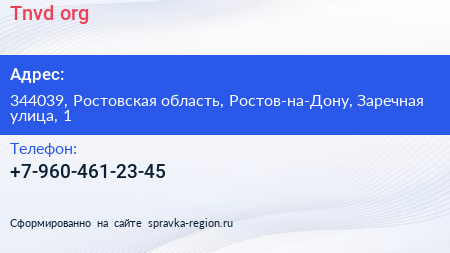 Tnvd.org по адресу 344039, Ростовская область, Ростов-на-Дону, Заречная улица, 1 в дальнейшем Организация, размещена в следующих категориях: