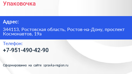 Упаковочка по адресу 344113, Ростовская область, Ростов-на-Дону, проспект Космонавтов, 19а в дальнейшем Организация, размещена в следующих категориях: