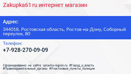 Zakupka61.ru, интернет-магазин по адресу 344018, Ростовская область, Ростов-на-Дону, Соборный переулок, 80 в дальнейшем Организация, размещена в следующих категориях: