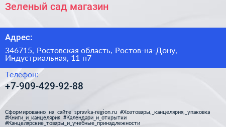 Зеленый сад, магазин по адресу 346715, Ростовская область, Ростов-на-Дону, Индустриальная, 11 п7 в дальнейшем Организация, размещена в следующих категориях: