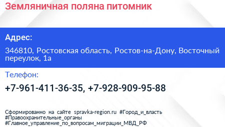 Земляничная поляна, питомник по адресу 346810, Ростовская область, Ростов-на-Дону, Восточный переулок, 1а в дальнейшем Организация, размещена в следующих категориях:
